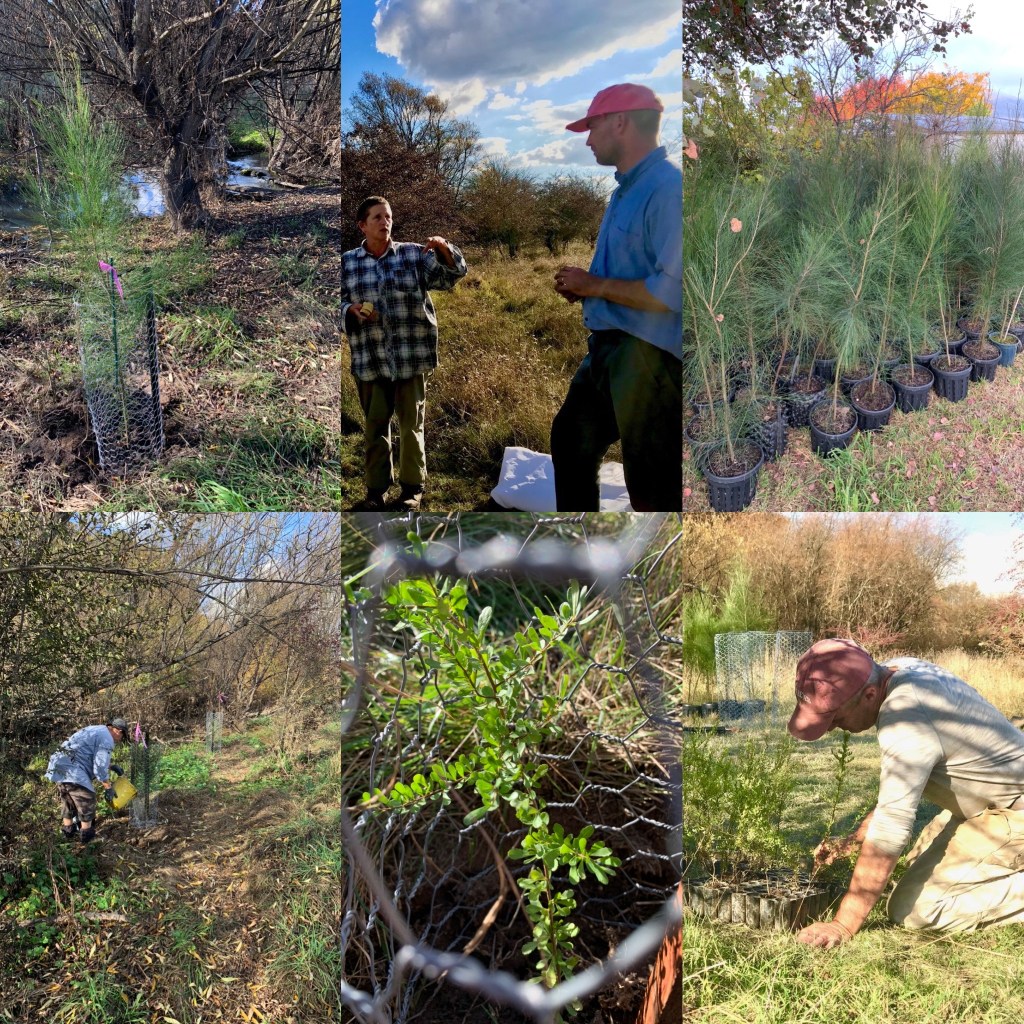 The goal of the plantings is to increase biodiversity in this forested riparian zone. The casuarinas will provide feed and habitat for Glossy Black Cockatoos and the shrubs will help protect smaller birds, like the Scarlet Robin. All plants were securely guarded against local wombats and swamp wallabies who regularly use this corridor.
